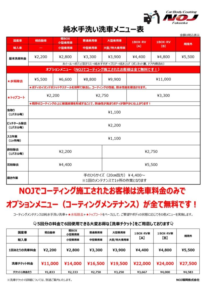 そこでNOJではメンテナンスを洗車料金のみとし、長くリーズナブルに通って頂けるようにしております!